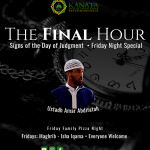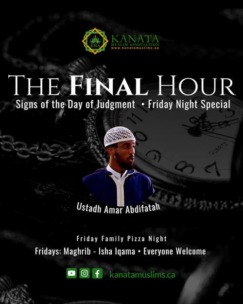Join us for The Final Hour, a special weekend series exploring the signs of the Day of Judgment and reflecting on what it means to prepare for the Hereafter. Bring the whole family for an evening of learning, reflection, and community, and grab a yummy slice of pizza at our Friday Family Pizza Night from 7:30 PM until Isha. Everyone is welcome.